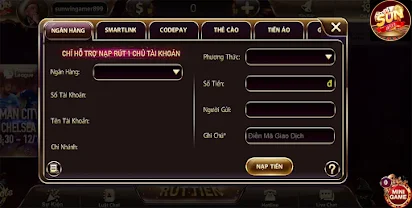 Sunwin hỗ trợ chuyển khoản ngân hàng và rút tiền qua ví điện tử.